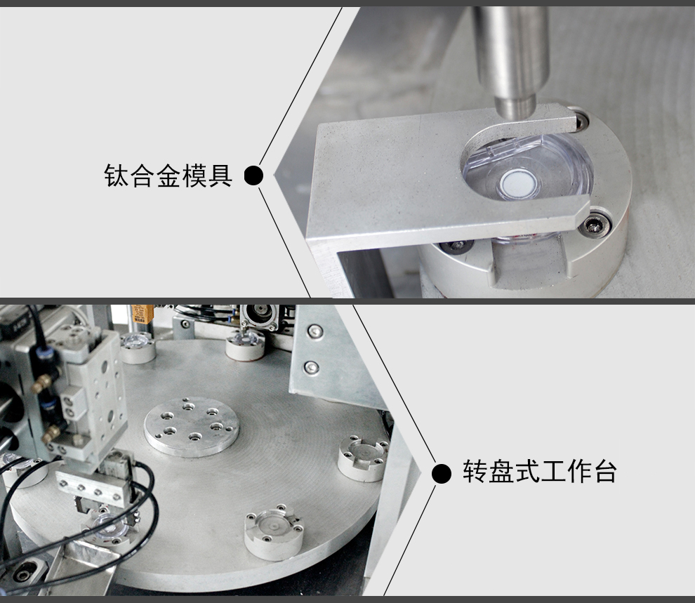 同時上下蓋自動上料,機械手取放,轉盤式超聲波自動焊接,自動出料,節(jié)省人工。