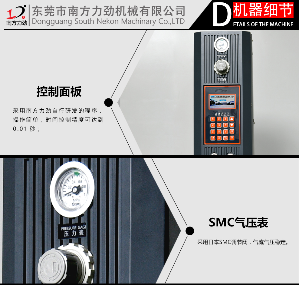 1.本機(jī)采用NTK換能器,FESTO氣缸,SMC調(diào)壓閥;